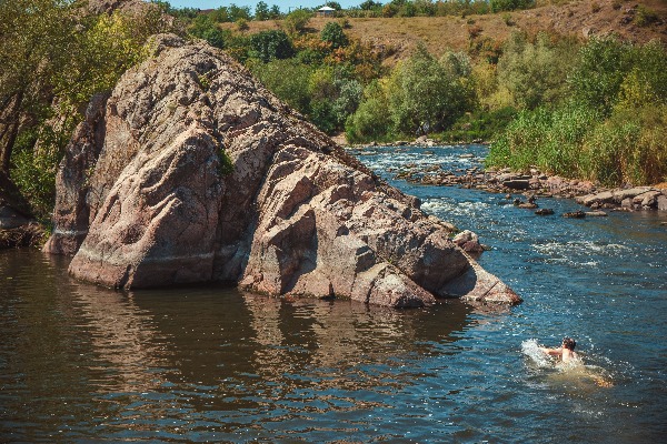 13:30 Обучение основных приемов гребли на гладкой воде, многократное прохождение порогов по маршруту №3 на рафтах, байдарках, пакрафтах (прохождение порогов Компанийский, Запорожский, Интеграл, Красные Врата, обзорная экскурсия Голубого озера, купание, прыжки со скал из разной высоты, по желанию бодирафтинг)
